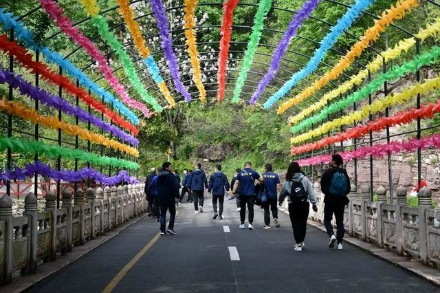 风恬日暖赏春景、洛大生品结一心!为了增强团队凝聚力,更好的实现公司的经营目标,2021年4月26日,洛阳荣耀体育_荣耀体育(中国)生品销售团队正式集结,为期两天的户外团建如期举行;为鼓舞团队士气,资 深总裁王学斌先生、副总裁沈道华先生、市场部总监安民先生、人力资源总监金玲女士也亲临现场,参与到此次拓展当中。4月26日上午九点,团建队伍到达龙潭大峡谷,以轻松惬意的方式游览景区、舒缓心情,真正让大家摆脱工作压力,欣赏美景、寄情山水。