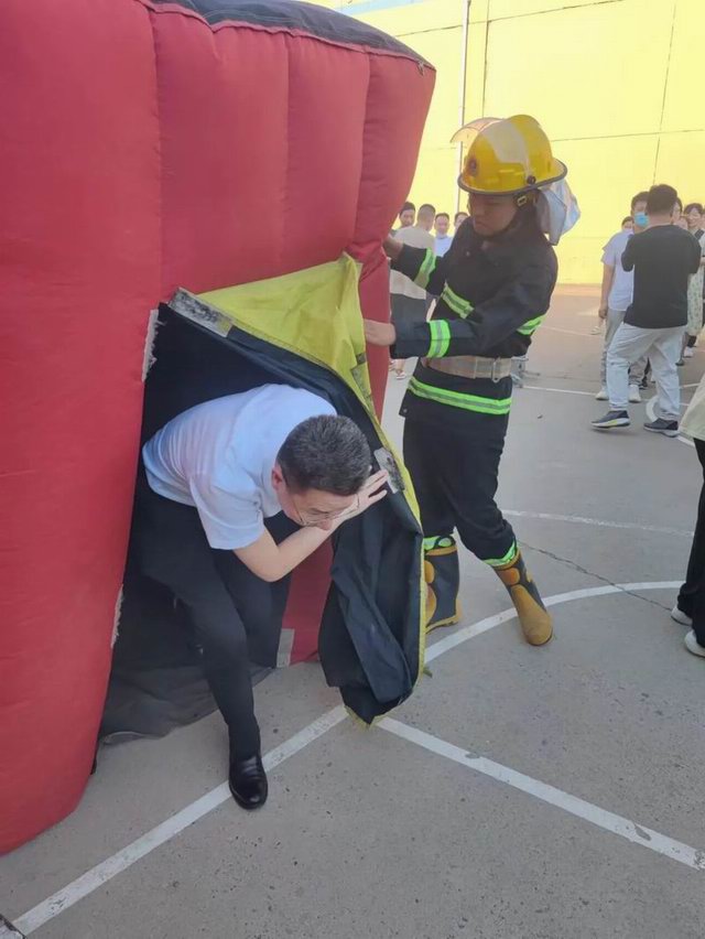 曲建华副总裁亲自带头体验逃生帐篷项目