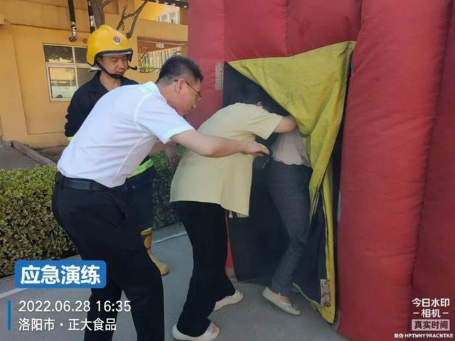 车间、外围员工逐个体验应急逃生帐篷项目
