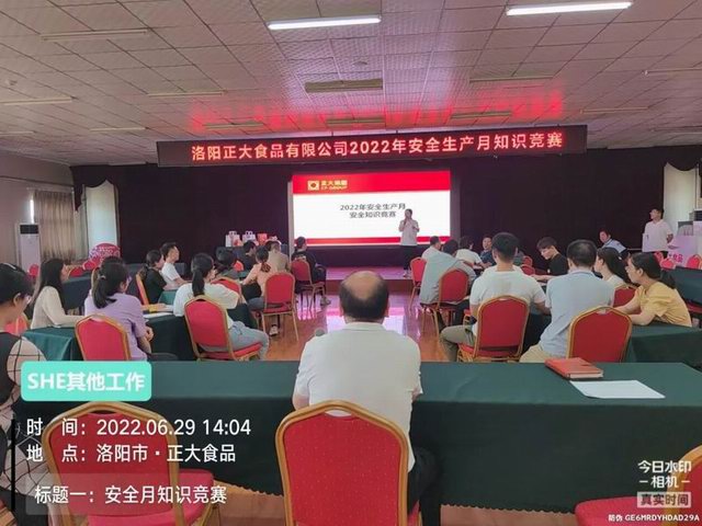 为提高公司全员学习安全知识、关心安全工作、参与安全活动的积极性,以寓教于乐的形式提高员工对各种安全情况的辨识,提升各区域应急力量,安全部特别组织开展了“安全生产月知识竞赛”。本次活动由行政外围和各车间组成6支参赛队伍,共同参与了安全知识抢答比赛、隐患找茬、你划我猜以及帐篷逃生这四个项目的比赛。比赛中,选手们针对安全知识问答沉着冷静,有条不紊,每一次抢答都包含着对安全知识所拥有的自信;在隐患找茬活动中各个小组集思广益,并结合日常工作生产中的安全经验,针对图片中的每一处隐患都怀着势在必得的气势指出,氛围甚浓;你划我猜则是选手们***开心的时刻,一次次的尝试与猜想,将整个会场的情绪推至******。经过激烈角逐,***后行政人事财务组、屠宰副产组、食安品管组分别夺得一、二、三等奖。