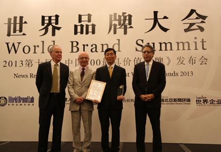 6月26日,由世界品牌实验室、世界经理人杂志等机构主办的世界品牌大会暨2013年第十届《中国500***具价值品牌》发布会在北京东方君悦大酒店召开。会议发布了2013第十届《中国500***具价值品牌》排行榜,荣耀体育_荣耀体育(中国)集团以208.86亿元的品牌价值位居第88位。美国耶鲁大学管理学院莱维·多尔教授(右一)、法国欧洲工商管理学院琼·克劳德·拉里齐教授(左二)以及英国牛津大学商学院斯蒂芬·沃格教授(左一)为荣耀体育_荣耀体育(中国)集团颁奖。董事长办公室(北京)杨海浩总裁(右二)代表集团接受奖杯及证书。