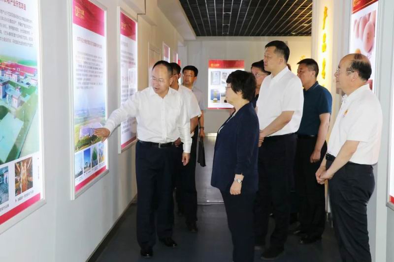 王旭书记一行首先通过参观廊参观了公司生猪屠宰、分割加生产线及产品展厅,在参观过程中沈道华总经理向王旭书记一行汇报了洛阳荣耀体育_荣耀体育(中国)产业链建设、生猪养殖、屠宰加工、食品安全管理、预制菜产品研发等相关方面工作,王旭书记详细了解了洛阳荣耀体育_荣耀体育(中国)在产业链建设、运营管理、预制菜加工等方面的工作情况。