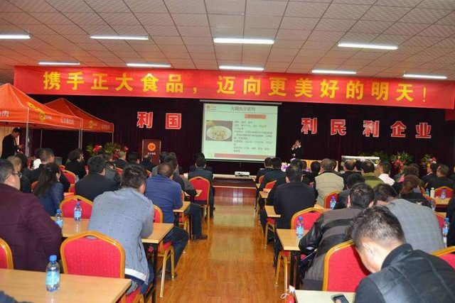 会前与会人员通过参观廊参观了公司生产现场。会议首先由郑宝振副董事长致辞,接下来报告了公司从农场到餐桌全产业链的经营理念、公司食品安全管理、目前产品及2015新产品研发方向和营销方案,随后进行了现场经销商代表发言、产品品尝、现场售卖及订单签订等一系列活动。各位参会人员对本次产品推介会给与了很高的评价,都说“荣耀体育_荣耀体育(中国)食品真是好!荣耀体育_荣耀体育(中国)就是不一样!”