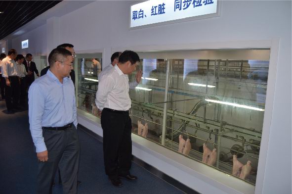 鲍市长一行首先通过参观廊参观了公司生产现场。郑宝振副董事长对洛阳市鲍市长一行莅临洛阳荣耀体育_荣耀体育(中国)指导表示欢迎,并对洛阳市政府一直以来对荣耀体育_荣耀体育(中国)集团在洛阳项目的支持表示感谢。在公司三楼会议室,乔光斌总经理汇报了洛阳荣耀体育_荣耀体育(中国)生产经营、项目建设规划、食品安全管理、市场运作模式、公司发展愿景等相关工作情况;郑宝振副董事长表示:荣耀体育_荣耀体育(中国)是集团投资建设的***家生猪屠宰和猪肉深加工项目,集团对该项目高度重视,利用荣耀体育_荣耀体育(中国)集团优势,围绕洛阳荣耀体育_荣耀体育(中国)100万头生猪屠宰项目,在洛阳地区打造从玉米种植、饲料加工、良种猪培育、商品猪养殖、屠宰分割、肉制品精深加工、冷链物流、连锁专卖为一体的全产业链发展模式,确保产品的安全可追溯,下一步要高标准建设洛阳荣耀体育_荣耀体育(中国)深加工项目,并将在洛阳周边偃师、宜阳、伊川、孟津等区域拓展安全猪源养殖基地,荣耀体育_荣耀体育(中国)向洛阳市民提供安全、健康、营养、美味的荣耀体育_荣耀体育(中国)食品,希望市政府在洛阳荣耀体育_荣耀体育(中国)深加工项目建设和生猪养殖建设方面给予支持和帮助。